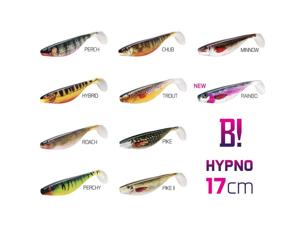 Nic nezůstává dlužná svému menu! Hypno je umělou nástrahou značky BOMB!, která má doslova hypnotizující účinky. Díky extrémně propracovaným proporcím a dokonalému barevnému provedení je tato nadrozměrná nástraha tím nejdokonalejším nástrojem pro oklamání vychytralých rekordních úlovků. Dokonalá práce těla pod vodou nenechá chladným žádného predátora. BOMB! Hypno je tou pravou nástrahou na lov opatrných velikánů vod!
