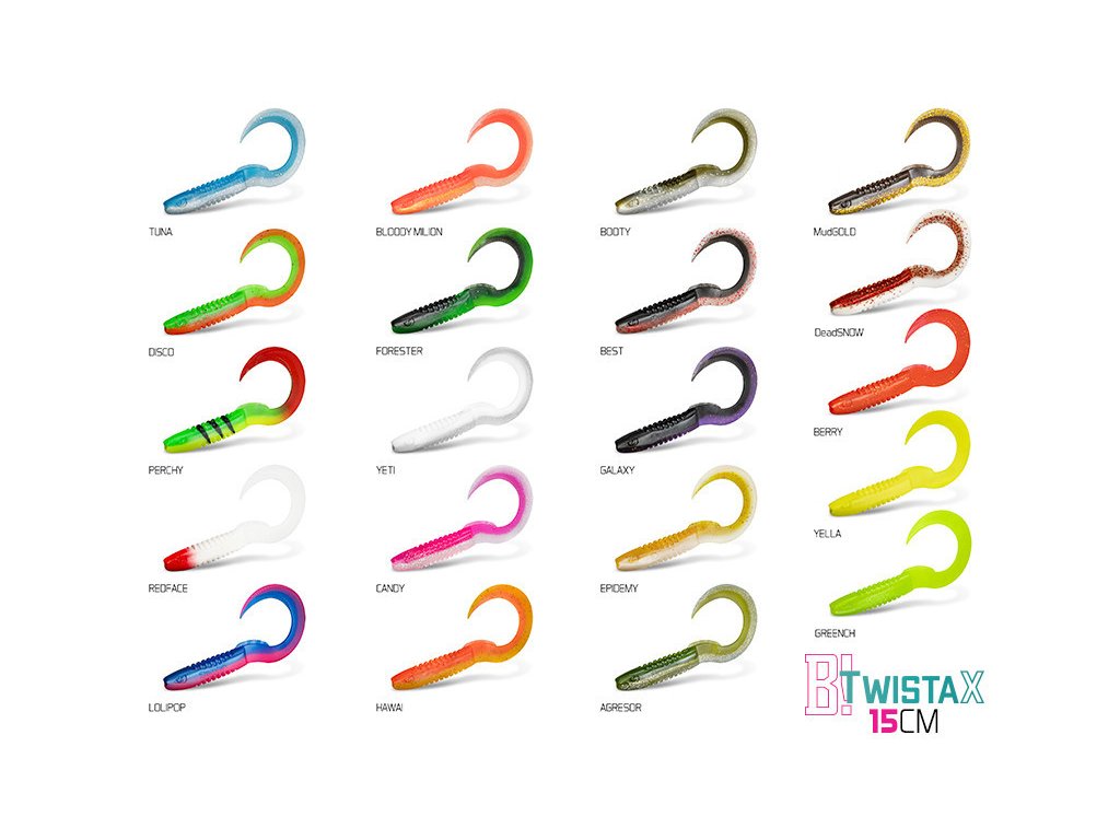 TwistaX Ealtail nabízí širokou škálu těch nejúčinnějších barevných provedení, která byla vybrána na základě dlouhodobých testů na vodních plochách po celé Evropě. Navíc jsou tyto barvy UV aktivní a tudíž umožňují intenzivnější odraz slunečního záření pod vodou, a tím pádem se nástrahy stávají nepřehlédnutelnými i ve velkých hloubkách nebo za zhoršených světelných podmínek. Nezapomněli jsme ani na pachovou stopu, kterou gumové nástrahy zanechávají ve vodě. Nástrahy obsahují sůl a rybí aroma a jsou tak neodolatelným cílem predátorů.