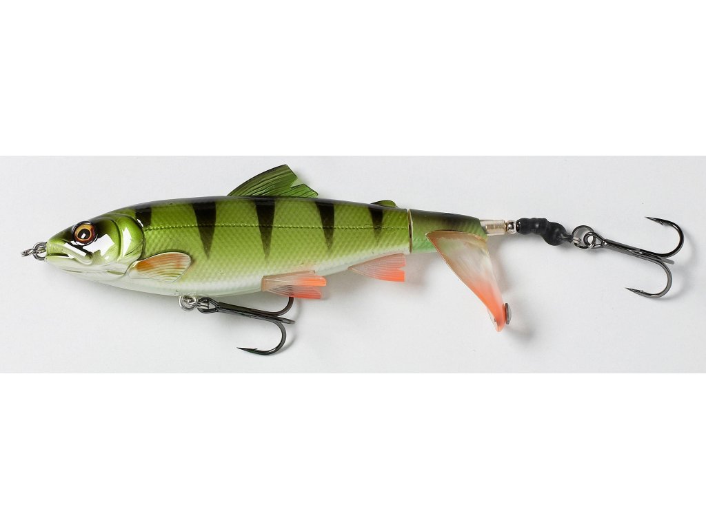 Skvělá imitace malého Okouna. Otáčející se ocas naráží do vody a vytváří hlasitý žbluňkavý zvuk, vlny a bublinkovou stopu za nástrahou. Malý kovový nýt v ocasu posiluje zvuk, který láká dravce z velké dálky!