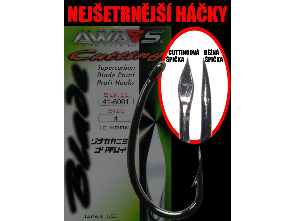NEJŠETRNĚJŠÍ HÁČKY NA TRHU! První boilie háčky s CUTTINGOVOU špičkou s protihrotem. Zcela nová modelová řada 41-6001 rozšiřuje oblíbenou a velice šetrnou řadu háčků CUTTING BLADE o modely určené pro lov s nástrahou mimo háček (vyvázanou nástrahou). Tyto háčky jednoznačně patří k nejšetrnějším háčkům na trhu, neboť jejich špička má 3x větší plochu než běžné háčky. Navíc tato špička je plochá oproti kulatým - tu mají ostatní háčky. To umožňuje vyvinout podstatně větší sílu při zdolávání ryby než se háček začne prořezávat rybí tlamou. Speciální japonské háčky Cutting Blade! NEJŠETRNĚJŠÍ HÁČKY NA TRHU! Ojedinělý tvar špičky, která se neohýbá ani nedeformuje při záseku ani při zdolávání. Chemicky ostřená "cuttingová" špička ve tvaru kopí má podstatně větší a pro rybu bezbolestnou průraznost při záseku do rybí tlamky, kdy i při menším tahu dosáhneme takřka 100% zásek. Špička je ve tvaru kopí a je podstatně širší (placatější), než u klasickýh háčků a má až 3x větší plochu špičky, čímž zaručuje podstatně menší prořezávání (párání) rybí tlamky (svaloviny) při zdolávání. Tvary a vyhnutí háčků jsou dlouhodobě vyzkoušeny našimi předními i světovými kapraři. Pro soukromé revíry se vyrábějí i BEZPROTIHROTOVÉ modely, které jsou vybaveny speciálním bodem, který protihrot částečně nahrazuje.Doplňkové parametry
