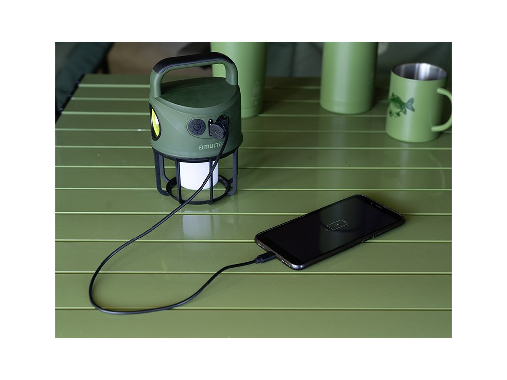 Delphin Multix je vybaven zabudovaným akumulátorem o kapacitě 4400 mAh, díky čemuž dokáže svítit až 24 hodin v závislosti na zvoleném režimu. Aktuální stav baterie lze snadno zkontrolovat pomocí indikátoru umístěného přímo na těle lampy. Plné nabití trvá přibližně 10 hodin a probíhá pomocí USB-C kabelu, který se také nachází v balení.