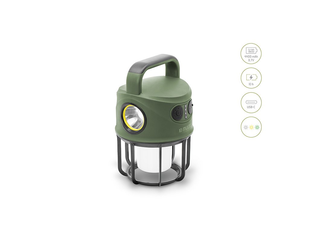 Lampa disponuje 2 LED diodami, které nabízejí až šest světelných režimů – od intenzivního bílého světla přes příjemné žluté až po jemné zelené osvětlení, které je ideální například jako poziční světlo v noci.