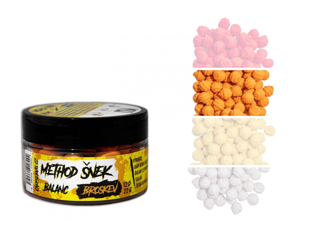 Dalším atributem je inovativní tvar, který imituje přirozenou potravu různé druhy plžů, což je činí neodolatelnými pro většinu, i těch nejopatrnějších kaprovitých ryb. Nástrahu je možné dipovat pomocí Aroma Pop up nebo Aroma speciál od CSV. Aromatizační prostředky jsou nositelemidentických pachových silic, které jsou použity přímo v Method šnek balančních nástrahách. Vyrábí se v šesti variantách.