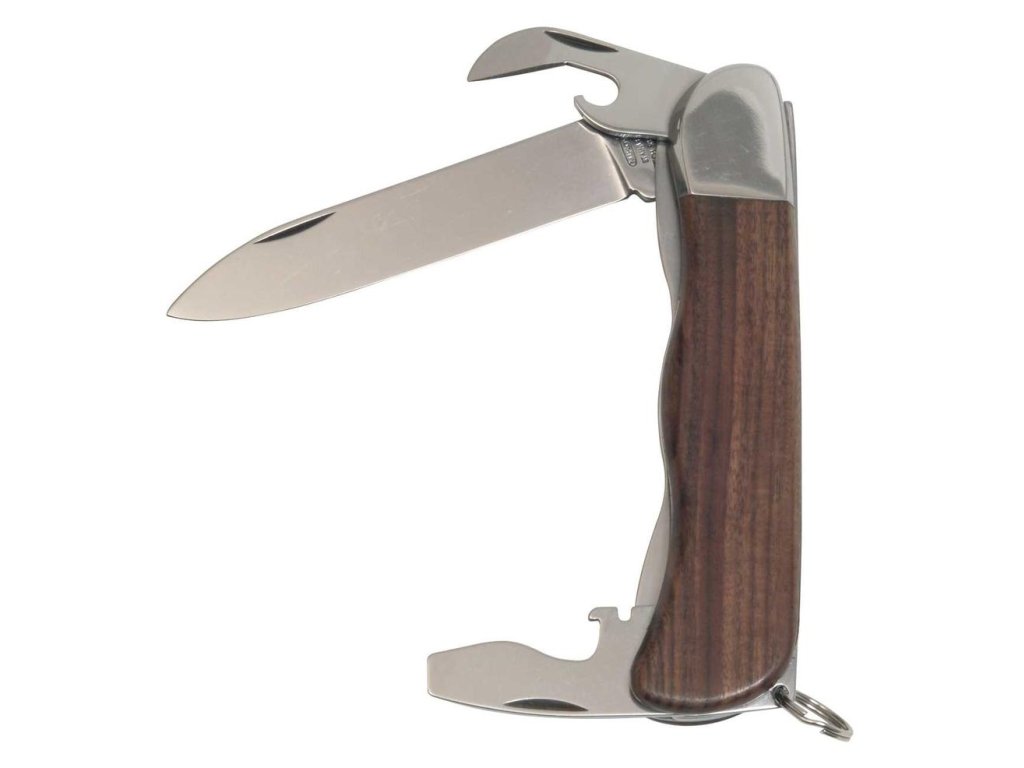 Čepel kapesního zavíracího nože HIKER je vyrobena z kvalitní nerezové oceli 420 o tvrdosti 53-55HRc. Tento kapesní zavírací nůž HIKER je vybaven otvírákem na konzervy, otvírákem na láhve, který má drážku na odizolování vodičů nebo ho lze také použít jako plochý šroubovák. Kapesní zavírací nůž HIKER má kování a střenku vyrobenou z kvalitního exotického dřeva Palisandr. Kapesní zavírací nůž HIKER je také vybaven kroužkem pro uchycení a je dodáván v koženém pouzdře s logem Mikov.