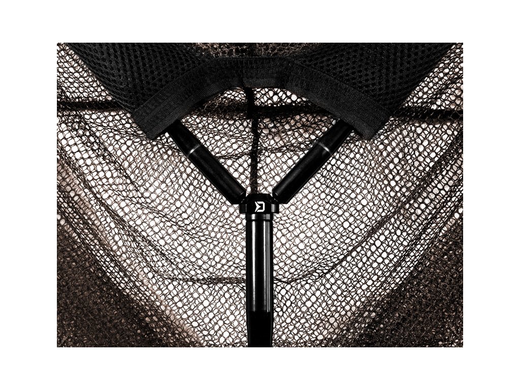 Právě dvoudílná rukojeť je vizuálně velmi působivou částí podběráku. Je vyrobena ze štíhlého strukturovaného uhlíku s dostatečnou pevností na podebrání těch největších kaprů. Rukojeť je v místech uchopení potažená gumovou, protiskluzovou vrstvou, čímž je manipulace s ní komfortní za každých okolností. Pro důkladné spojení s hlavou slouží minimalistický konektor z nerezavějící oceli, který je k rukojeti připojen pomocí zesíleného vlepeného závitu.