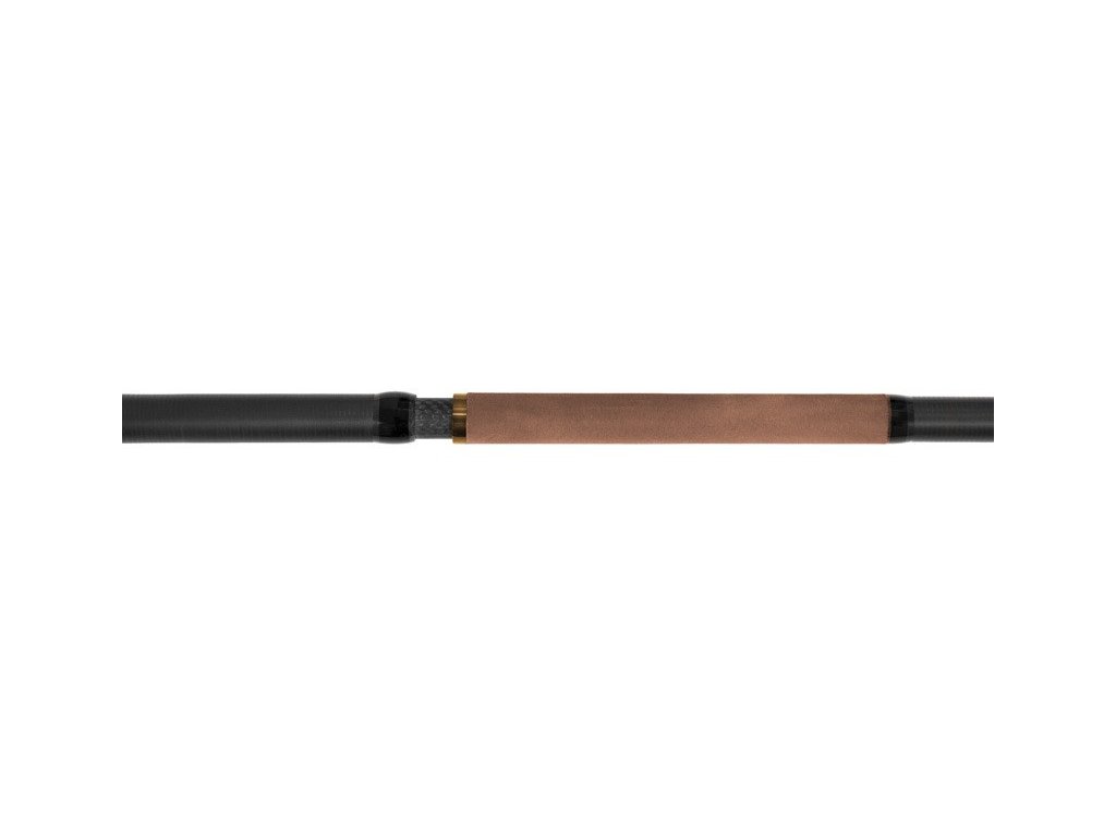 Právě dvoudílná rukojeť je vizuálně velmi působivou částí podběráku. Je vyrobena ze štíhlého strukturovaného uhlíku s dostatečnou pevností na podebrání těch největších kaprů. Rukojeť je v místech uchopení potažená gumovou, protiskluzovou vrstvou, čímž je manipulace s ní komfortní za každých okolností. Pro důkladné spojení s hlavou slouží minimalistický konektor z nerezavějící oceli, který je k rukojeti připojen pomocí zesíleného vlepeného závitu.