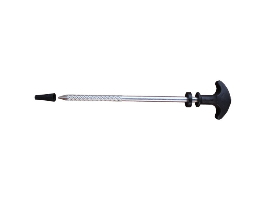 Délka 21cm, plastový nálisek je tvarován tak, aby se kolík dal snadněji vyndavat ze země, pod náliskem je gumový kroužek, který chrání provaz stanu proti prodření. Celá sada je dodávána v rolovacím kapsáři z 600D Oxford materiálu a s deseti kryty špiček kolíků.