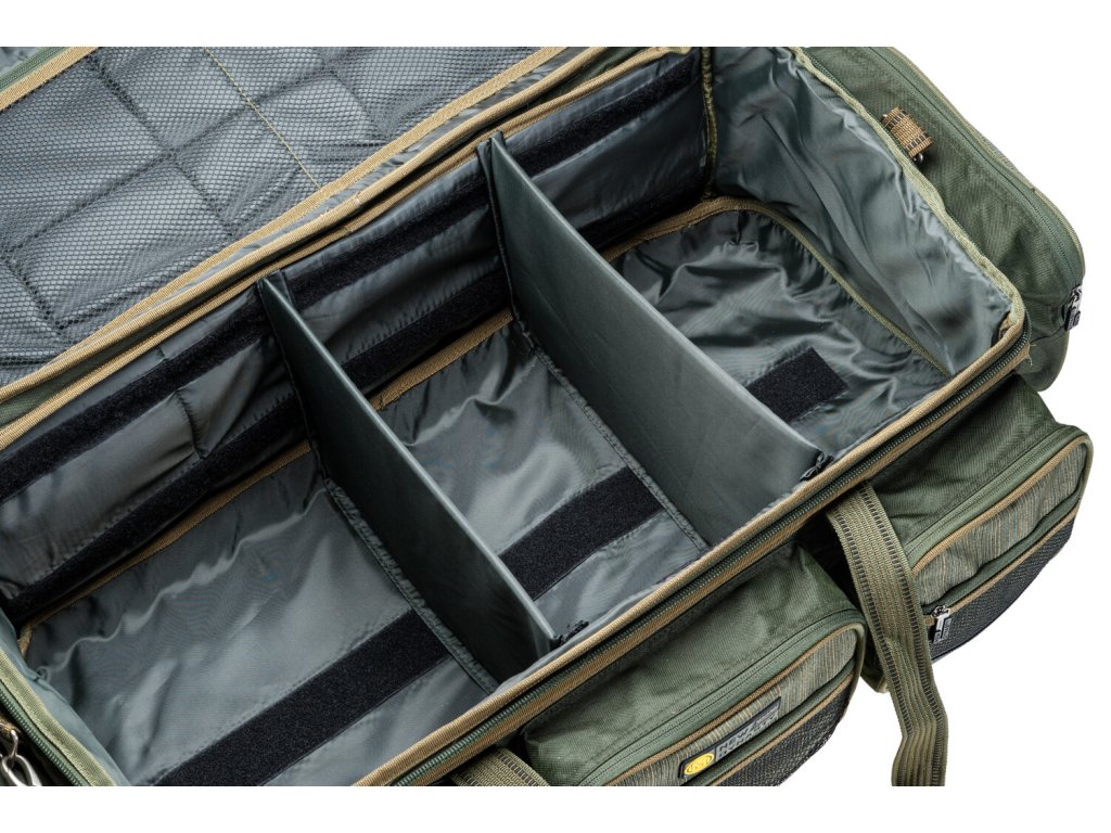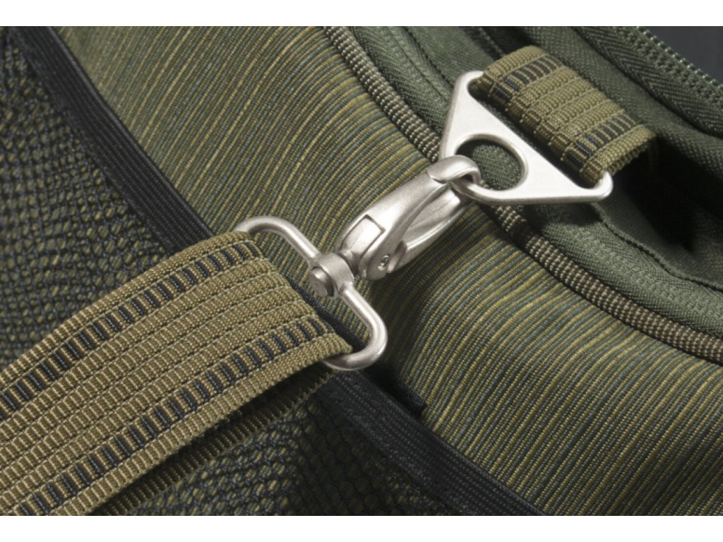 Několik vnitřních a pět velkých kapes po obvodu slouží k uložení příslušenství. Tuhé víko dobře poslouží jako stolek. Vyztužené dno i stěny, masivní zipy a pevné popruhy s kovovými sponami jsou zárukou nekompromisní kvality tohoto extrémního zavazadla.