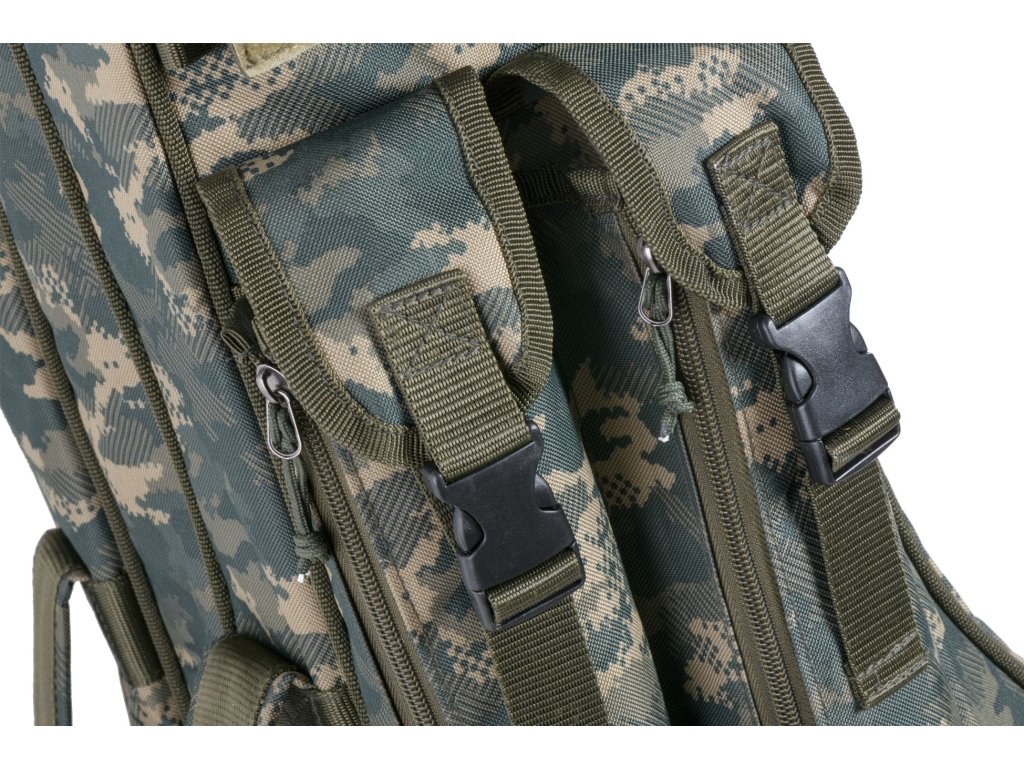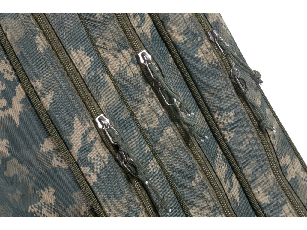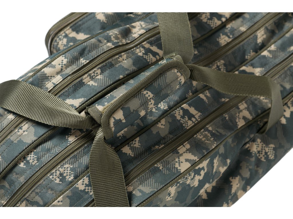 Přepracované série tříkomorových obalů na pruty v různých délkách pro přepravu teleskopických prutů nebo dělených kaprových či feederových prutů ze 100% nepromokavého materiálu v atraktivním maskovacím designu, odolného proti protržení. Jsou vybaveny luxusními polstrovanými popruhy, kvalitními doplňky i novými luxusními táhly Mivardi.2x Dlouhá kapsa 100 x 8 x 3 cm